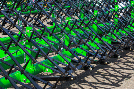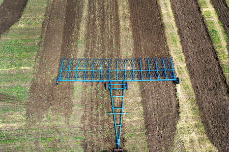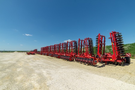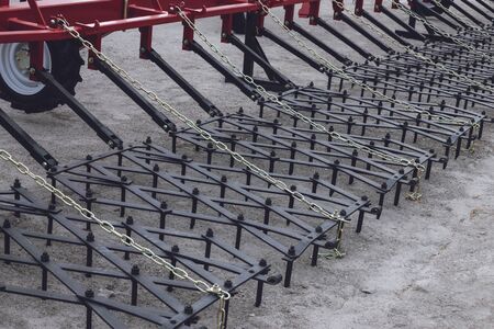 Harrows new agricultural machinery shot close up