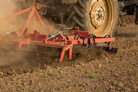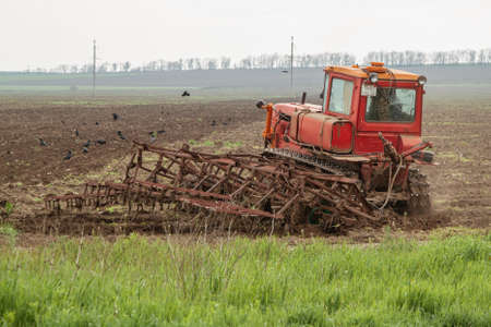 Tractor of arable fields-preparing the land for sowing. agricultural equipment.