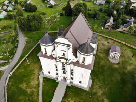 Aerial view of the Church of St. Bartholomew in the center of Drohobych, Ukraine