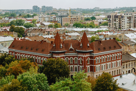 View of the school building from the tower of the church of St. Olga and Elizabeth. Lviv. Ukraine