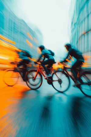 Cycling in the city. Urban cycling. Motion blurred people riding bicycles in the city