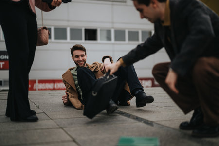 Group of hip hop dancers permorming their dance. Crew making show in an urban place
