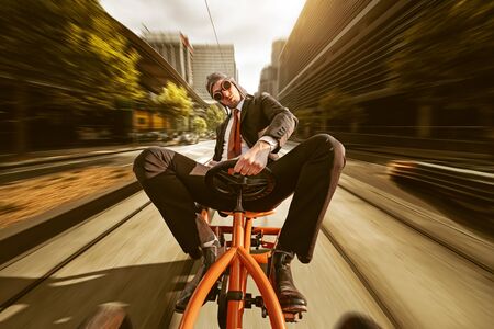 cyclist on the street in Bilbao city, spain, mode of transportation
