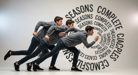 Low-angle view of a person's feet in sneakers, stepping on a road lined with fallen autumn leaves, signaling a change in season.