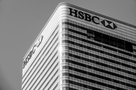 LONDON, UK - JANUARY 30, 2016: HSBC Sign on office building in Canary Wharf, London