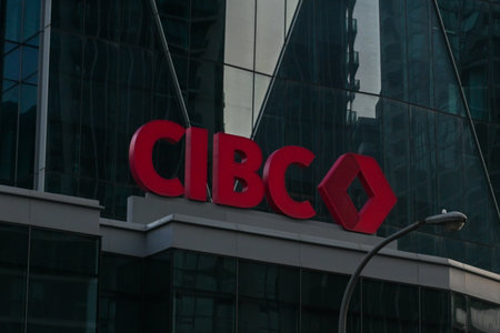 Toronto, ON, Canada –August 30, 2025: Close-up of CIBC sign on the building. Canadian Imperial Bank of Commerce.