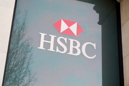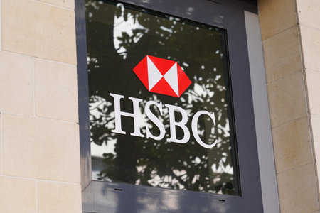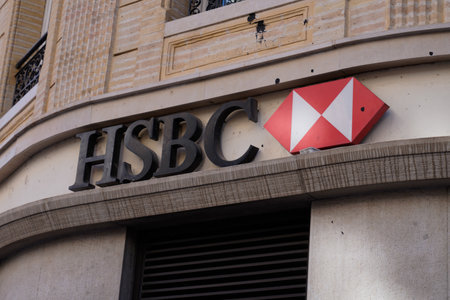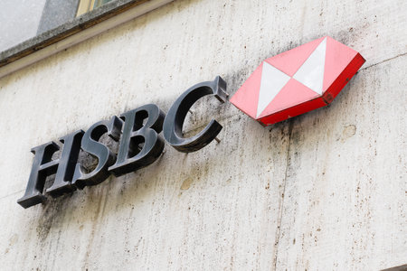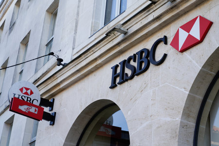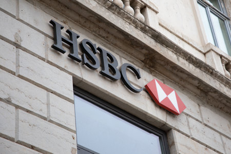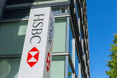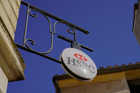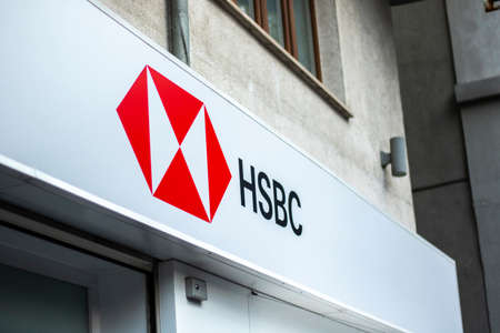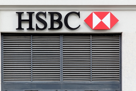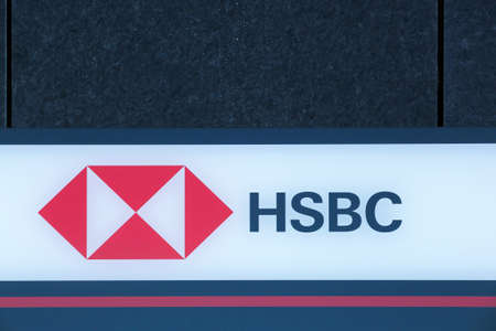 Lyon, France - May 21, 2020: HSBC logo on a wall. HSBC Holdings is a British multinational banking and financial services company headquartered in London, United Kingdom