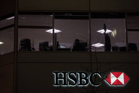 MONTREAL, CANADA - OCTOBER 4, 2018: HSBC bank in Montreal, Canada. HSBC is a British multinational banking and financial services company