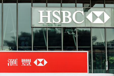 HongKong, China - November, 2019: The logo signage of the HSBC Bank in Hong Kong