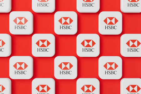 LONDON, UK - July 2023: HSBC bank company logo. 3D Rendering