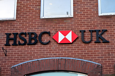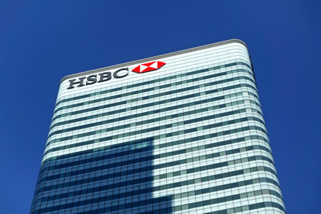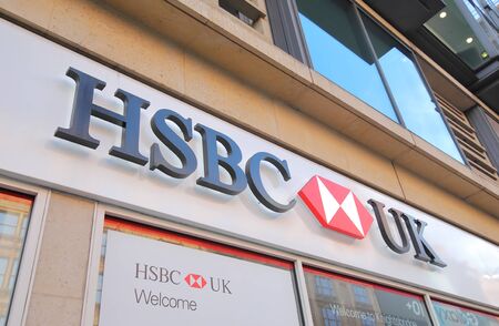 LONDON, UNITED KINGDOM - FEBRUARY 08, 2015: HSBC bank logo on Oxford Street in London. HSBC Holdings plc was founded in London in 1991 by the Hongkong and Shanghai Banking Corporation as a new group holding company