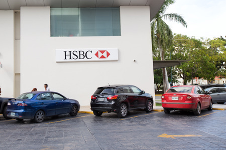Cancun, Mexico, 9 February 2016: HSBC bank entrance at Plaza Holywood. HSBC Holding is the fifth largest bank by total assets in the world