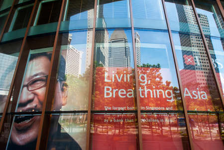 The skyscrapers of the Singapore Business Financial District around Raffles Place, with Bank of China, Maybank and HSBC prominent.
