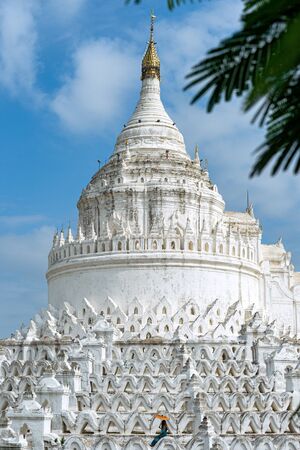 MINGUN-Myanmar, January 20, 2019 : Unidentified tourists make merit, pay homage to blessings at Mya Thein Tan Pagoda on january 20,2019 in Mingun, Myanmar.