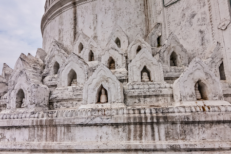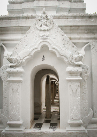 White stupa at the ancient Buddhist temple in Mandalay, Myanmar.