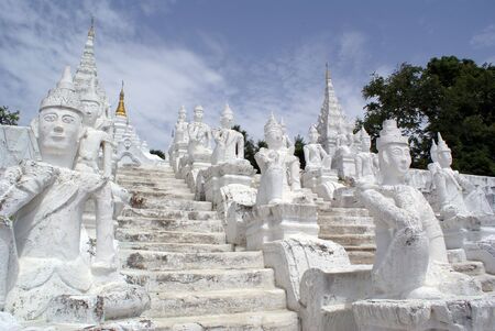 Staircase with white statues in Mingun, Mandalay, Myanmar