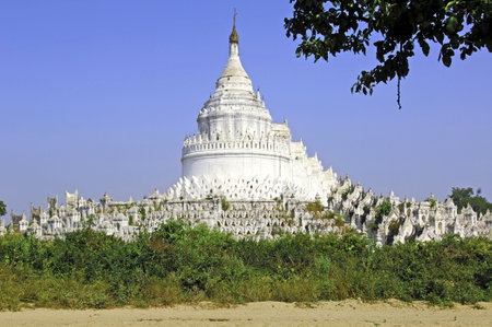 Hsinbyume (Myatheindan Pagoda), the large white pagoda on the northern side of Mingun in Sagaing Region, near Mandalay, Myanmar (Burma)