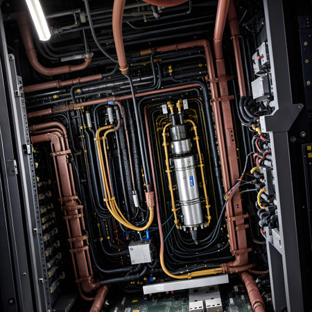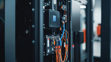 This close-up image showcases the intricate wiring and circuit boards of a data center, highlighting the advanced technology and infrastructure that powers modern computing systems.