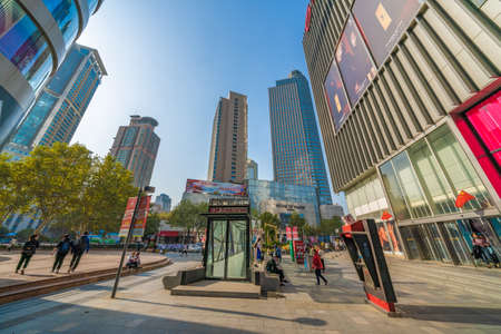 NANJING, CHINA - NOVEMBER 11: This is Xinjiekou, a famous shopping district in the downtown area on November 11, 2019 in Nanjing