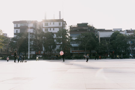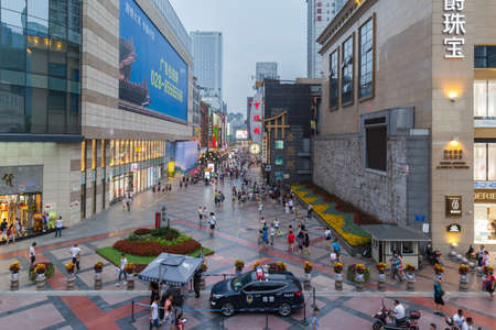Chengdu, China - July 30, 2015 - Lots of people on the famous pedestrianized shopping street Chunxi road before nightfall, in Chengdu, the capital of Sichuan Province in China.