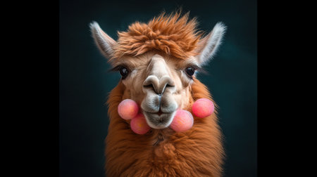 Fluffy adorable lama blowing bubblegum. Generative AI