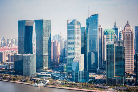Cityscape view of Shanghai city in the morning. Skyscraper of Lujiazui in Pudong, view from The north Bund of Shanghai, China. landmark and popular for tourism attractions. Travel and Vacation concept