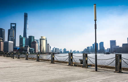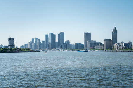 Modern skylines at the bank of Huangpu River, the bund of Shanghai, view from Pudong.