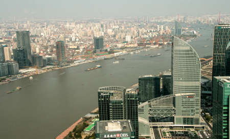 view from the Oriental Pearl TV Tower.shanghai lujiazui financial center aside the huangpu river.