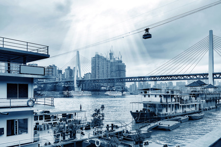 andscape of downtown near water of chongqing in blue sky