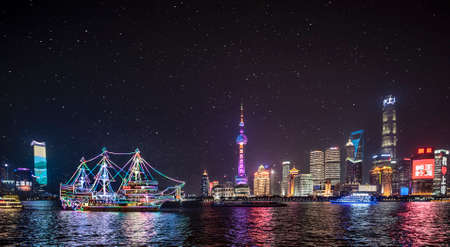 Shanghai skyline and Huangpu River at night,China.