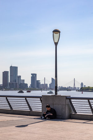 Man sitting on the embankment in Rotterdam, Netherlands
