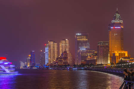 Shanghai, China - May 22, 2018: A night view of the colonial embankment skyline in Shanghai, China.