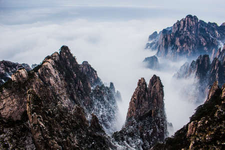 Clouds above the peaks of Huangshan National park. China.