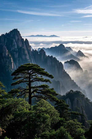 Huangshan Sea of Clouds and Pine Tree Landscape
