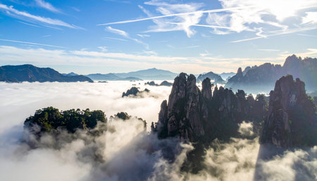 Aerial view of the clouds in the morning at Huangshan, China