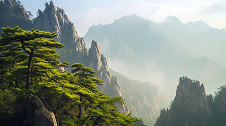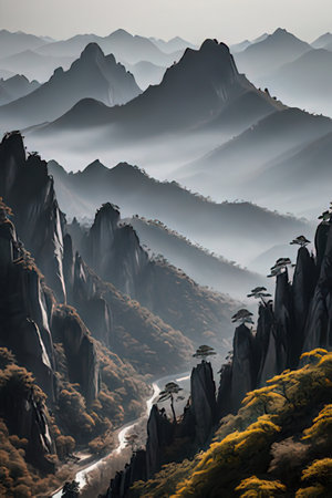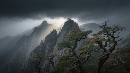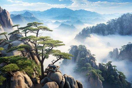 Generative AI : Landscape of Mount Huangshan Yellow Mountains UNESCO World Heritage Site Located in Huangshan Anhui China