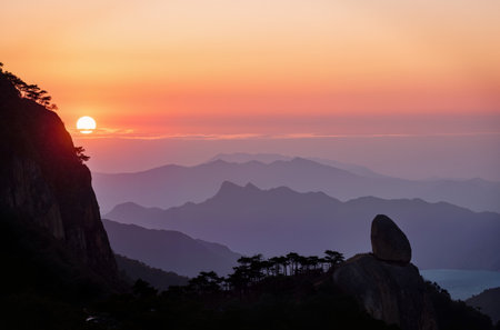Sunset over Yellow Mountains, Huangshan, China