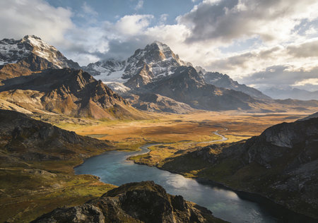 The Rio Chillcamayu winds its way through a valley near Ausangate, Cusco