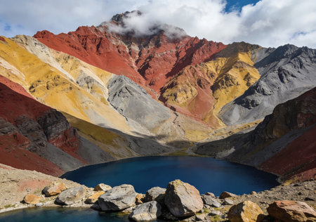 Colourful rock formations in the mineral-rich mountains of Red Valley. Cordillera Vilcanota, Cusco, Peru