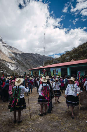 Ancash, Peru, July 29, 2014: people in typical costumes at traditional festival of peasant communities in the paron lagoon