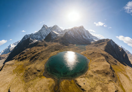 Mountain landscape with lake in Cordillera Huayhuash, Peru