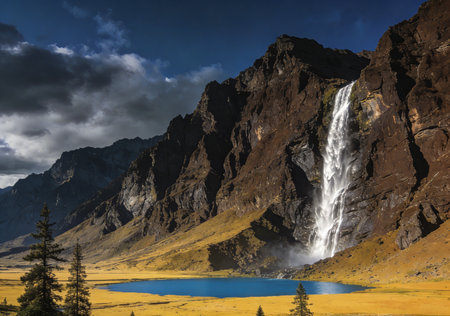 Waterfall in Yading national level reserve, Daocheng County, Sichuan Province, China