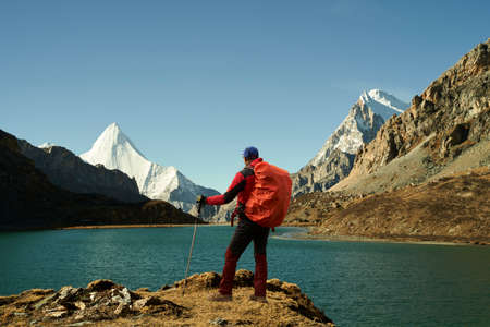 Hiker in Cordillera Huayhuash, Peru, South America