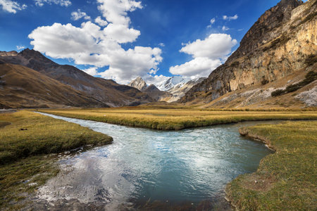 Mountain landscape with the river in Cordillera Blanca, Peru