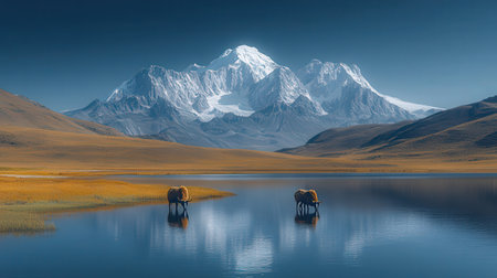 An AI generated illustration of a stunning landscape featuring a mountain and its reflection in the calm waters of a lake