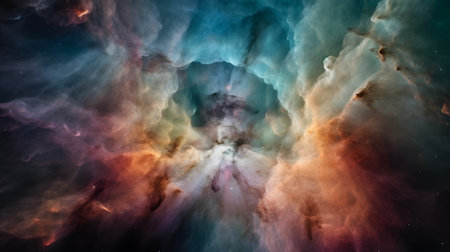 Space showing vibrant nebula in deep space with colorful gas clouds and stars. resolution