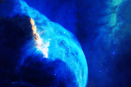 Blue, bright space nebula. Elements of this image furnished by . high quality photo