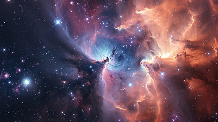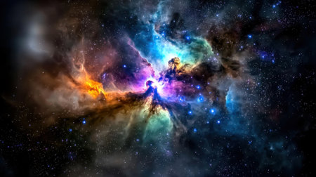 Colorful cosmic nebula in the universe shows swirling gases and bright stars in the night sky illuminating the vastness of space