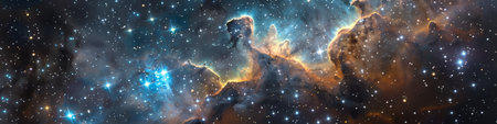 A stunning astronomical image showcasing a luminous nebula with swirling gases and nascent stars, evoking the vastness and beauty of the cosmos.
