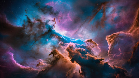 Abstract cosmic nebula, clouds of stardust. AI generated.